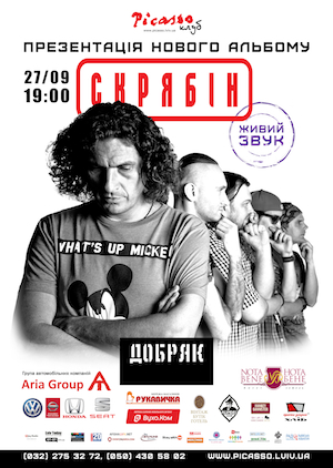 У п'ятницю, 27 вересня у клубі "Picasso" відбудеться презентаця нового альбому "Скрябіна" під назвою "Добряк".