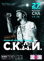 Чудова новина для львівських прихильників поп-рок музики та гурту С.К.А.Й. зокрема: 27 вересня відбудеться великий сольний концерт гурту у Львові. Концерт відбудеться на велотреку СКА, тож місця вистачить усім.