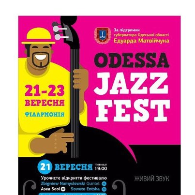 З 21 по 23 вересня в Одесі вдруге пройде міжнародний джазовий фестиваль Odessa JazzFest, що проводиться під патронатом губернатора Одеської області Едуарда Матвійчука і за підтримки управління культури і туризму облдержадміністрації. читати повністю...