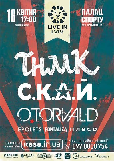 18 квітня — найгучніший фестиваль весни — LIVE in LVIV. На сцені Палацу Спорту "Україна" для вас виступлять Танок На Майдані Конго (ТНМК), С.К.А.Й., O.Torvald, Epolets, Fontaliza та ПЛЕСО. читати повністю...
